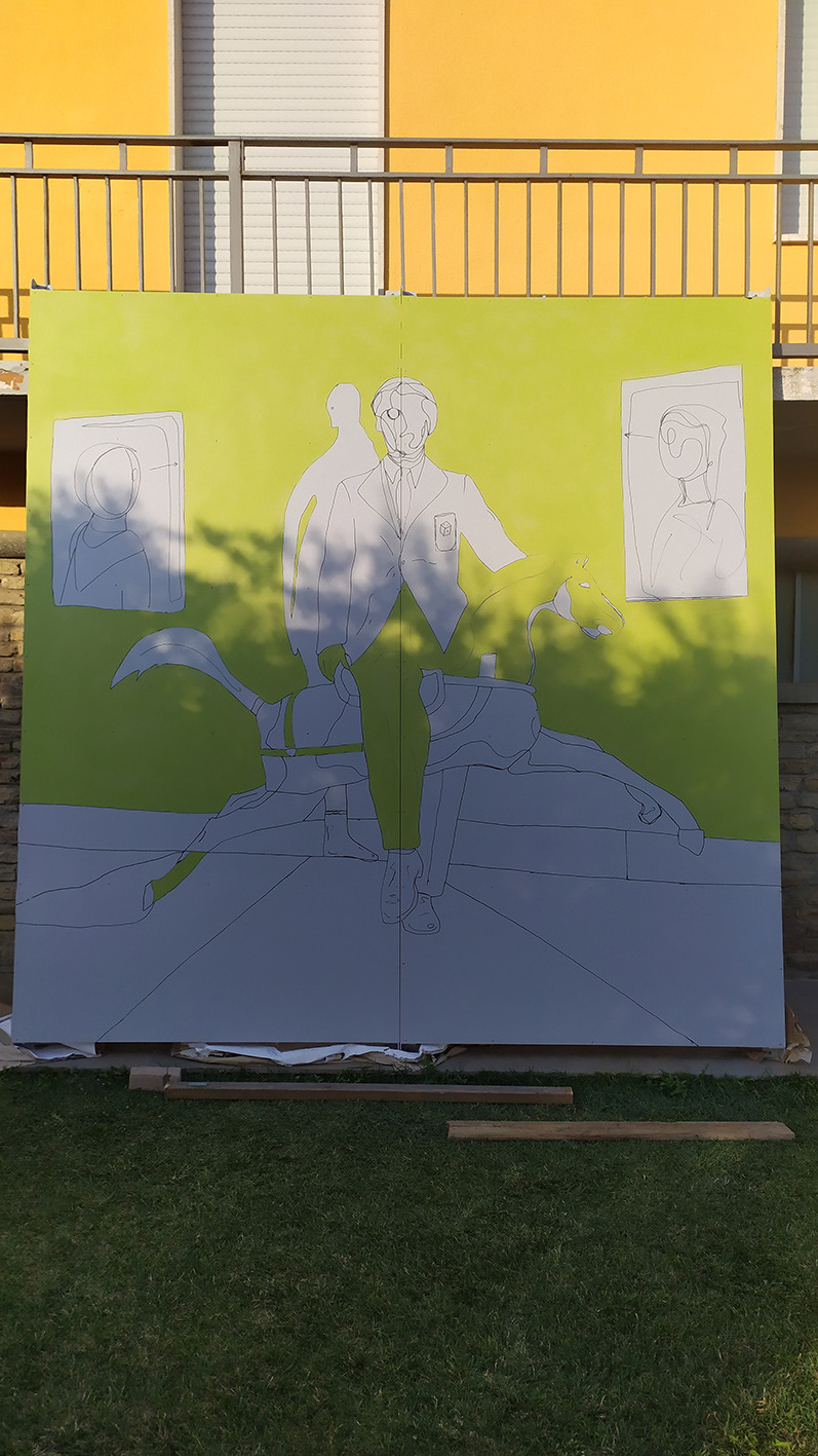 Artistic residence at "Museo A Cielo Aperto" in Camo for "Ricostruzioni21" from 1st to 6th August. Made this painting called "Rite of Passage", enamel on 3x3mt galvanized panel https://www.museoacieloapertodicamo.it/